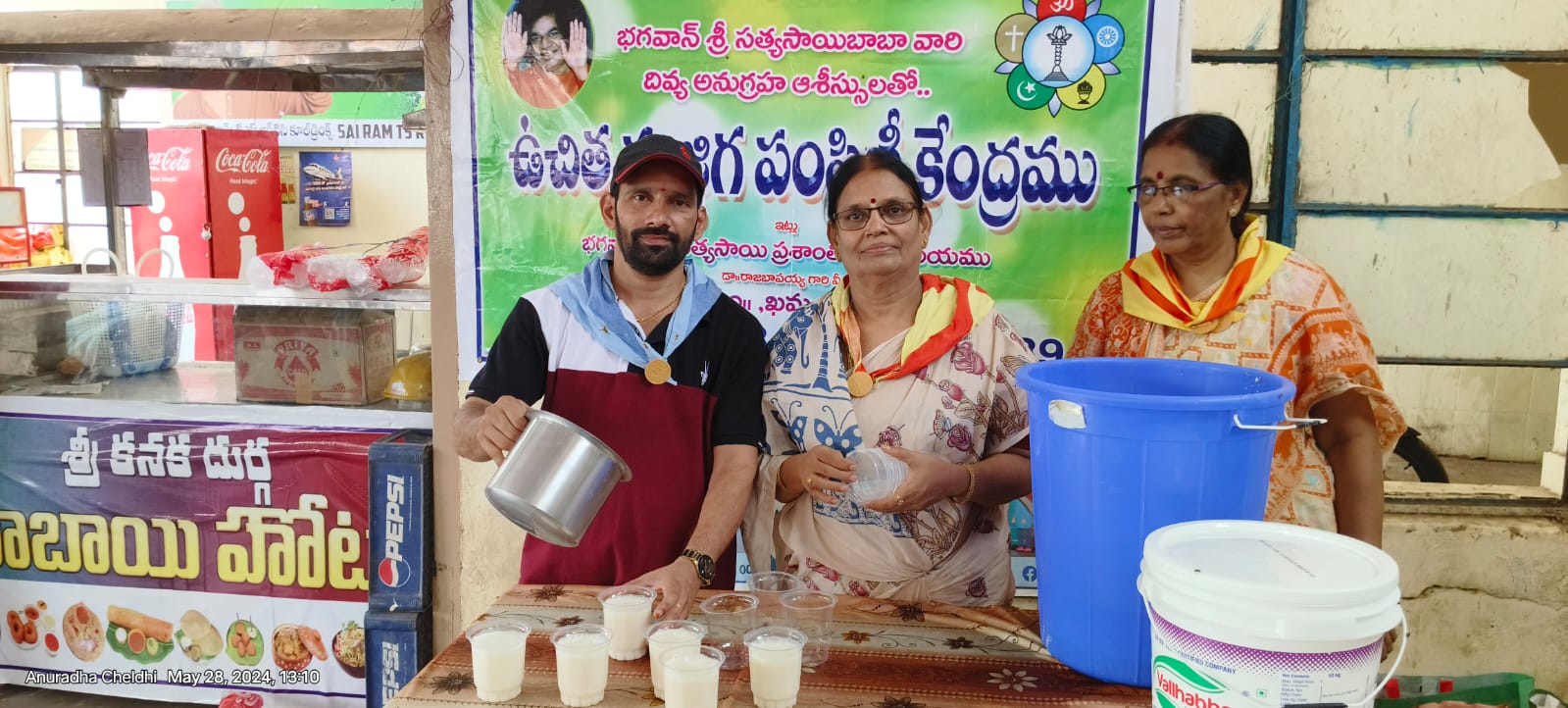 🌺ఓం శ్రీ సాయిరామ్🌺 శ్రీ సత్యసాయి సేవా సంస్ధలు ఖమ్మం జిల్లా 🌻🌻 భగవాన్ శ్రీ సత్యసాయి బాబా వారి దివ్య అనుగ్రహ ఆశీస్సులతో, 28/5/2024 తేదీన ఖమ్మం జిల్లా, సత్తుపల్లి సమితి, సత్తుపల్లి TSRTC బస్ స్టాండ్ లో సత్తుపల్లి సమితి వారిచే మజ్జిగ పంపిణీ.... సాయిరాం 🙏 జిల్లా ఆఫీస్ ఇంఛార్జి శ్రీ సత్య సాయి సేవా సంస్ధలు ఖమ్మం జిల్లా