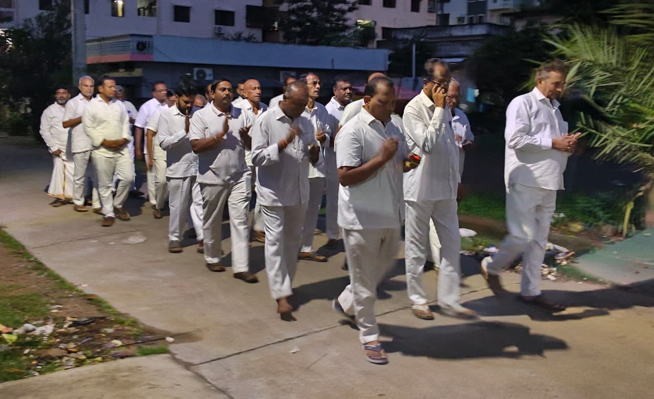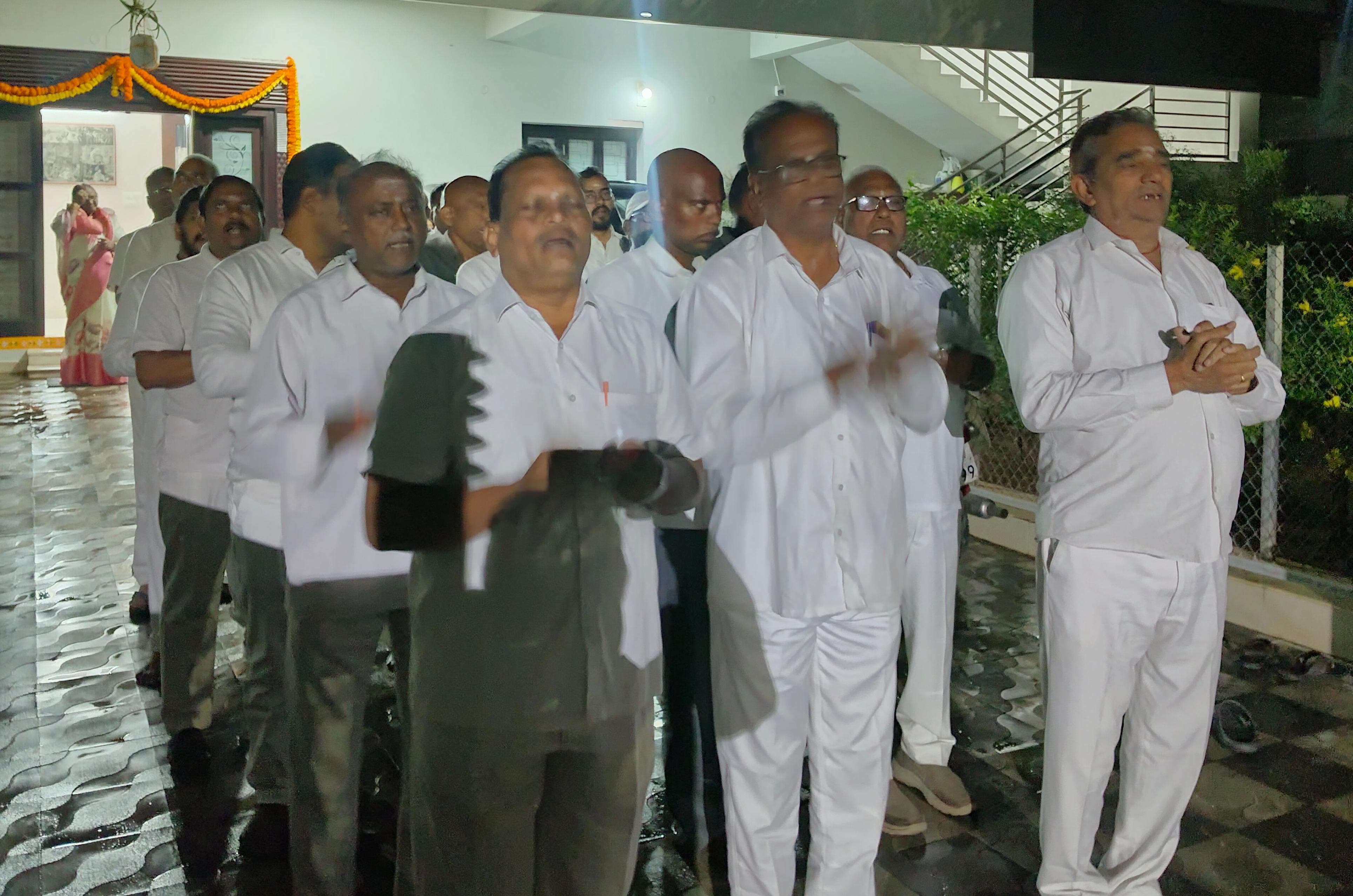 భగవాన్ బాబా వారి దివ్య అనుగ్రహ ఆశీస్సులతో స్వామి వారి శత జయంతి ఉత్సవముల్లో భాగముగా రాష్ట్ర వ్యాప్తంగా నిర్వహించబడుతున్న దీక్షా సాధన లో నేడు 87వ రోజు శనివారము ఉదయం ఖమ్మం బ్యాంకు కాలనీ లో శ్రీ కొదుమూరి.లక్ష్మణ మూర్తి గారు, శ్రీమతి రేఖారాణి గారి ఇంటివద్ద నిర్వహించబడిన సుప్రభాత సేవా కార్యక్రమము.జై సాయిరాం. కన్వీనర్,శ్రీ సత్యసాయి సేవా సమితి, ఖమ్మం.
