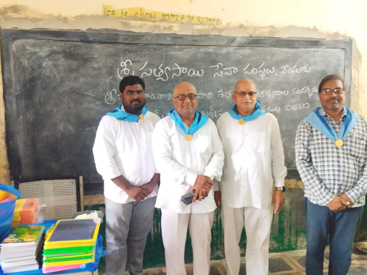 ఓం శ్రీ సాయిరాం శ్రీ సత్య సాయి సేవా సంస్థలు ఖమ్మం జిల్లా 🌻🌻 భగవాన్ శ్రీ సత్య సాయిబాబా వారి దివ్య అనుగ్రహ ఆశీస్సులతో, స్వామి వారి శత జయంతి ఉత్సవాలు పురస్కరించుకుని వేంసూరు సమితి వారి ఆధ్వర్యంలో వేంసూరు గ్రామంలో మూడు ప్రాథమిక పాఠశాలల లోని విద్యార్థులకు పలకలు, బలపాలు, నోటు బుక్స్, పెన్స్, పెన్సిల్స్,షార్పనర్స్, ఎరేజర్స్ , ఆటవస్తువులు ప్రేమతో అందజేయుట జరిగినది.. ఈ కార్యక్రమంలో మండల విద్యాధికారి శ్రీ చలంచర్ల వెంకటేశ్వర రావు గారు, ఉపాధ్యాయులు, వేంసూరు సమితి కన్వీనర్ గారు, ఇతర సభ్యులు , యూత్ సభ్యులు పాల్గొన్నారు. జిల్లా ఆఫీస్ ఇంఛార్జి శ్రీ సత్య సాయి సేవా సంస్థలు ఖమ్మం జిల్లా