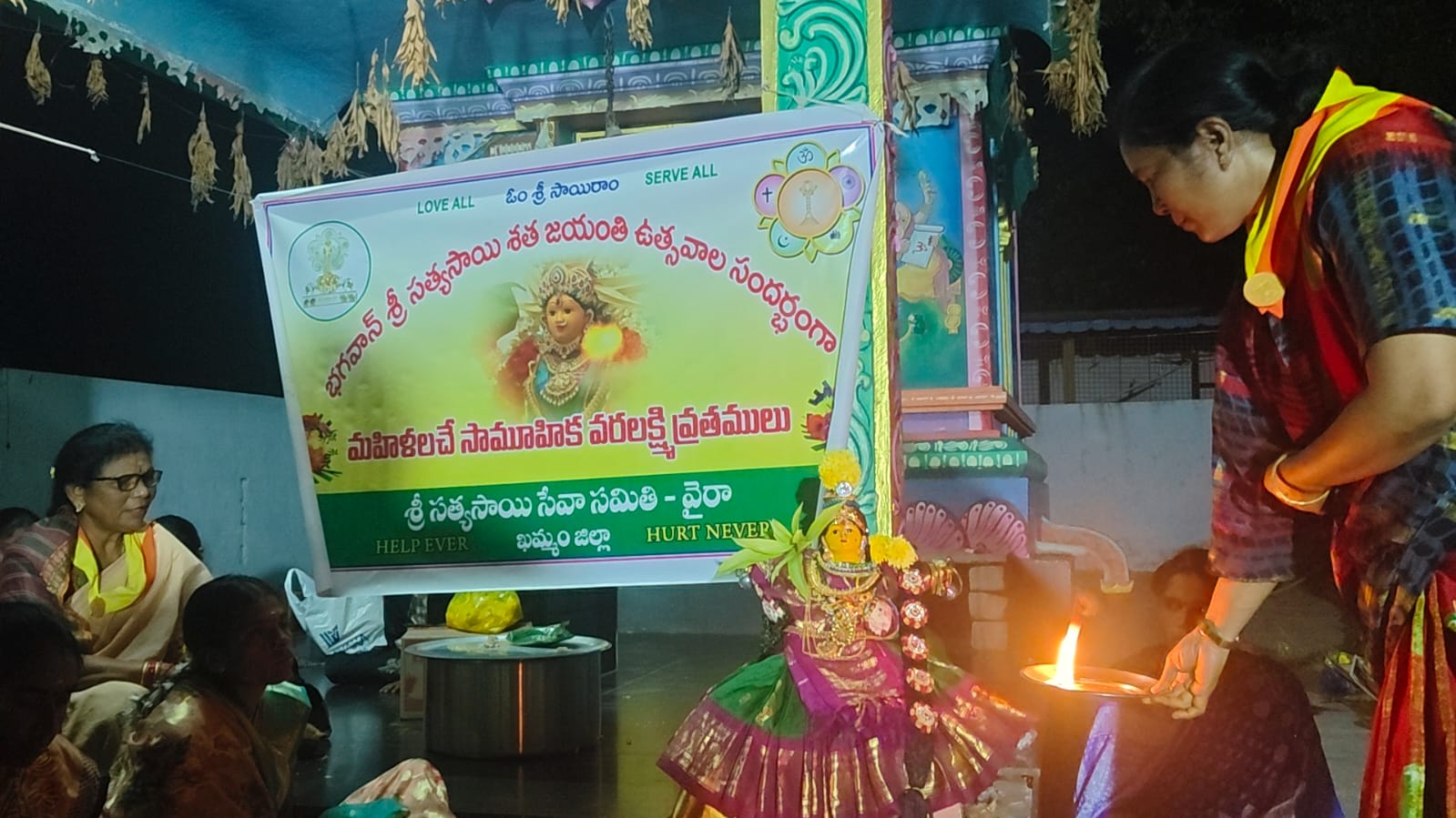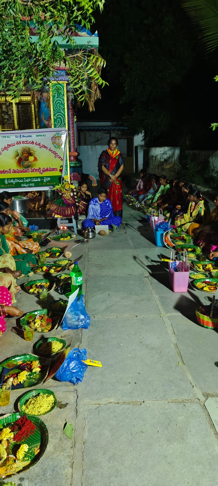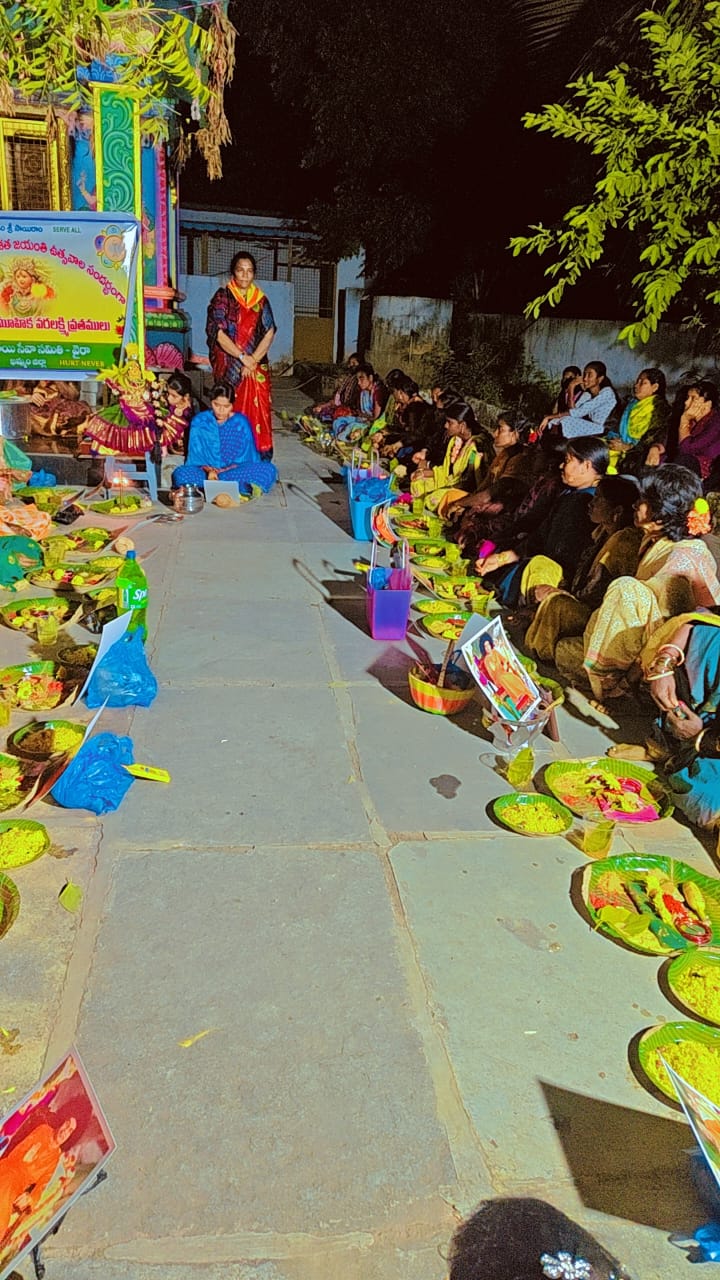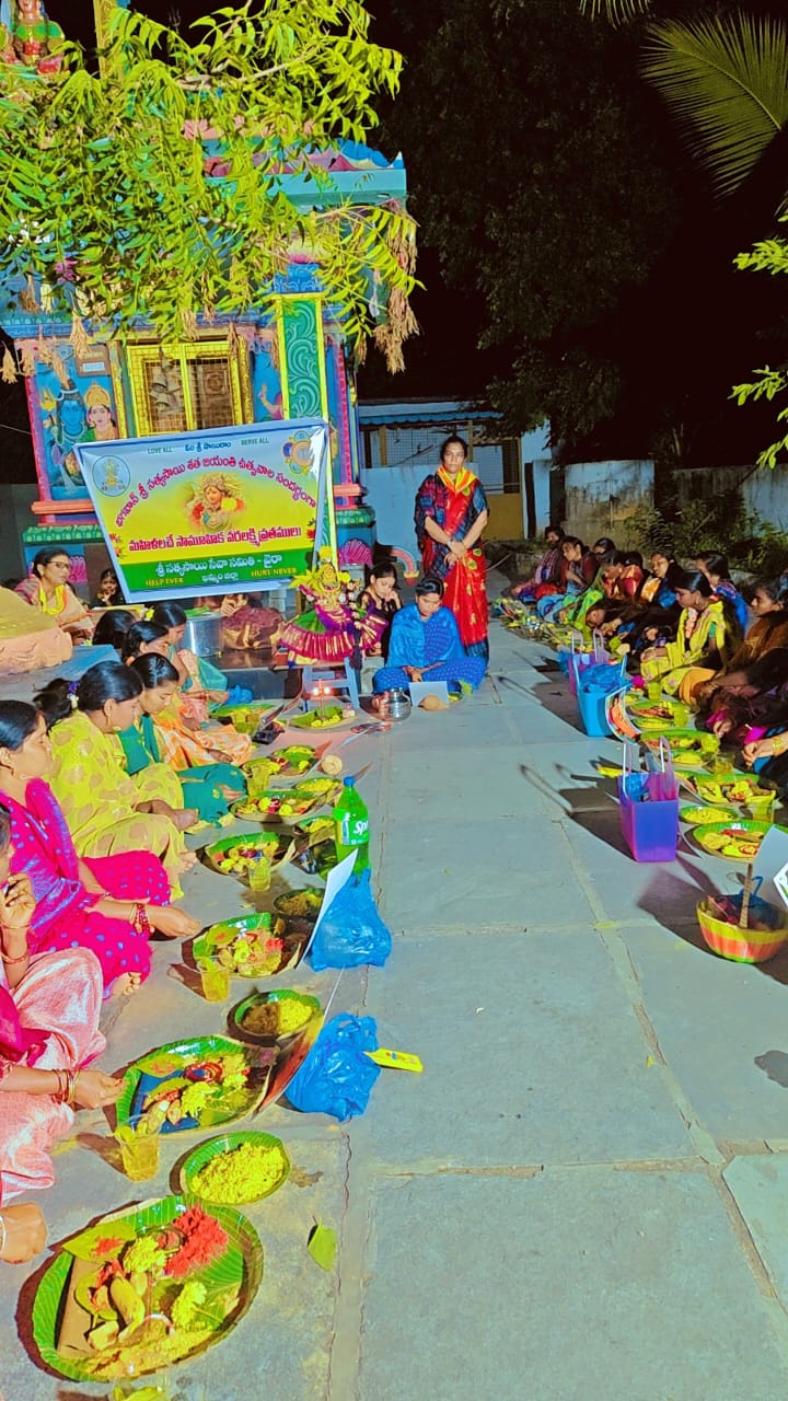 ఓం శ్రీ సాయిరాం శ్రీ సత్యసాయి సేవా సంస్థలు ఖమ్మం జిల్లా 🌻🌻 భగవాన్ శ్రీ సత్యసాయి బాబా వారి దివ్య అనుగ్రహ ఆశీస్సులతో వైరా సమితి అన్నవరం గ్రామంలో అమ్మవారి దేవాలయ ప్రాంగణంలో, స్వామి వారి శత జయంతి వేడుకలు పురస్కరించుకుని 7/8/2025 తేదీన సాయంత్రం వరలక్ష్మీ వ్రతాలు ఘనంగా జరిగాయి..30 మంది మహిళలు భక్తిప్రపత్తులతో వ్రతములో పాల్గొన్నారు... ఈ కార్యక్రమం లో జిల్లా కార్యవర్గ సభ్యులు, ఖమ్మం సమితి బాధ్యులు, మహిళా సభ్యులు, యూత్ సభ్యులు, యాక్టివ్ సభ్యులు పాల్గొన్నారు. గ్రామస్థులు మహిళలు అధిక సంఖ్యలో పాల్గొని స్వామి కృపకు పాత్రులు అయినారు.. సాయిరాం జిల్లా ఆఫీస్ ఇంఛార్జి శ్రీ సత్యసాయి సేవా సంస్థలు ఖమ్మం జిల్లా