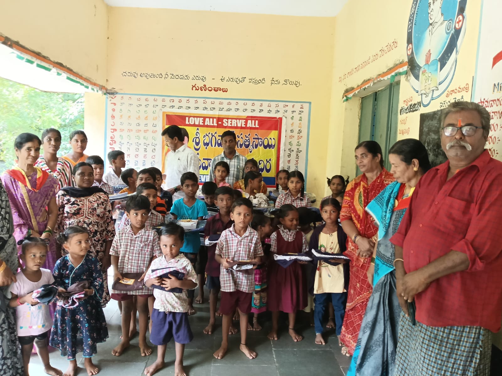 శ్రీ సత్యసాయి సేవా సంస్థలు ఖమ్మం జిల్లా 🌻🌻 భగవాన్ శ్రీ సత్యసాయి బాబా వారి దివ్య అనుగ్రహ ఆశీస్సులతో... మధిర సమితి వారి ఆధ్వర్యంలో మడుపల్లి , అయ్యవారిగూడెం, చొప్పకట్టలపాలెం, భీమవరం ప్రభుత్వ పాఠశాలలలో 11/9/2025 తేదీన 175 మంది విద్యార్థులకు డ్రెస్సెస్, స్కూల్ బ్యాగ్స్, నోట్ బుక్స్ పంపిణీ జరిగింది.. సాయిరాం జిల్లా ఆఫీస్ ఇంఛార్జి శ్రీ సత్యసాయి సేవా సంస్థలు ఖమ్మం జిల్లా