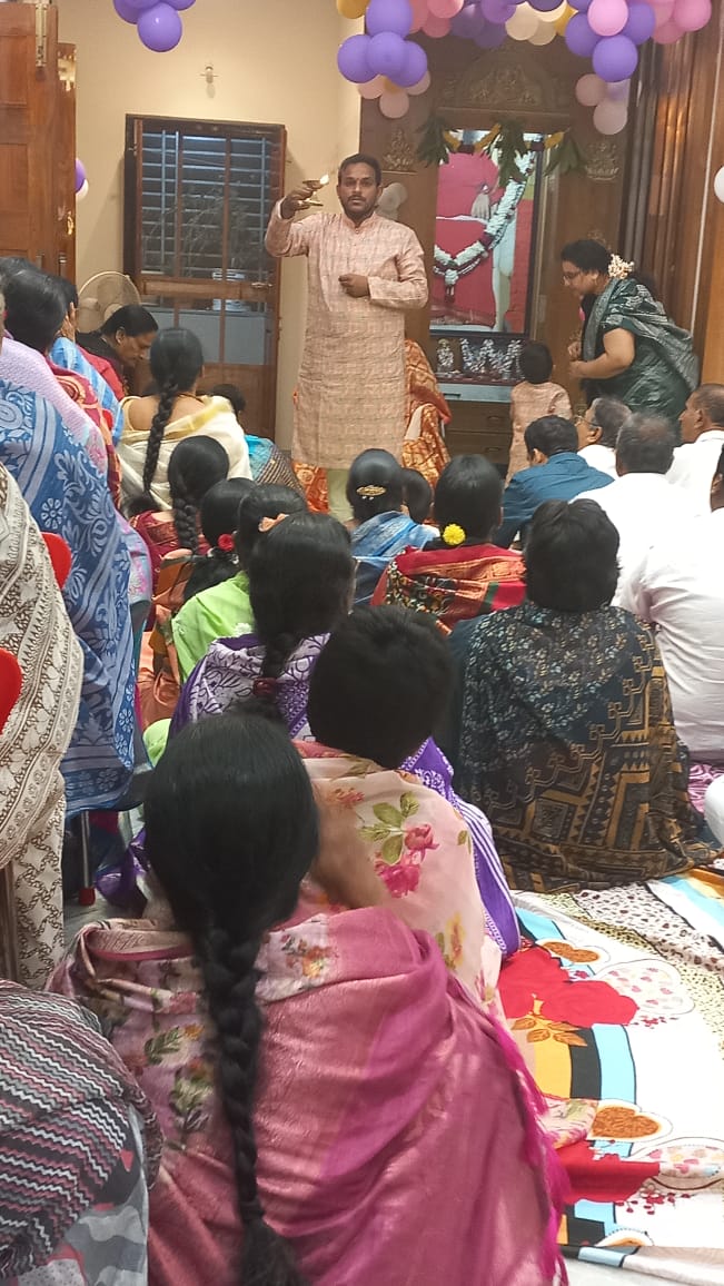 భగవాన్ బాబా వారి దివ్య అనుగ్రహ ఆశీస్సులతో స్వామి వారి శత జయంతి ఉత్సవముల్లో భాగముగా ఈరోజు సాయంత్రం ఖమ్మం పిల్లిచిన్ని కృష్ణ తోటలో శ్రీ వంగవీటి.రామకృష్ణ గారు,శ్రీమతి జ్యోతి గారి ఇంటివద్ద నిర్వహించబడిన నామ సంకీర్తనా కార్యక్రమము.భజన అంతరం జిల్లా ఆఫీసు ఇంచార్జ్ శ్రీ ప్రభాకర శ్రేష్టి గారు భక్తుల నుద్దేశించి తమ అమూల్య సందేశాన్ని అందించారు.తదుపరి స్వామి వారి జన్మ దిన వేడుకలలో కేక్ కట్ చేసి స్వామి వారి కి శుభాకాంక్షలు తెలియచేసిన తదుపరి మంగళహారతి తో ఈరోజు కార్యక్రమములు పూర్తి అయినవి.